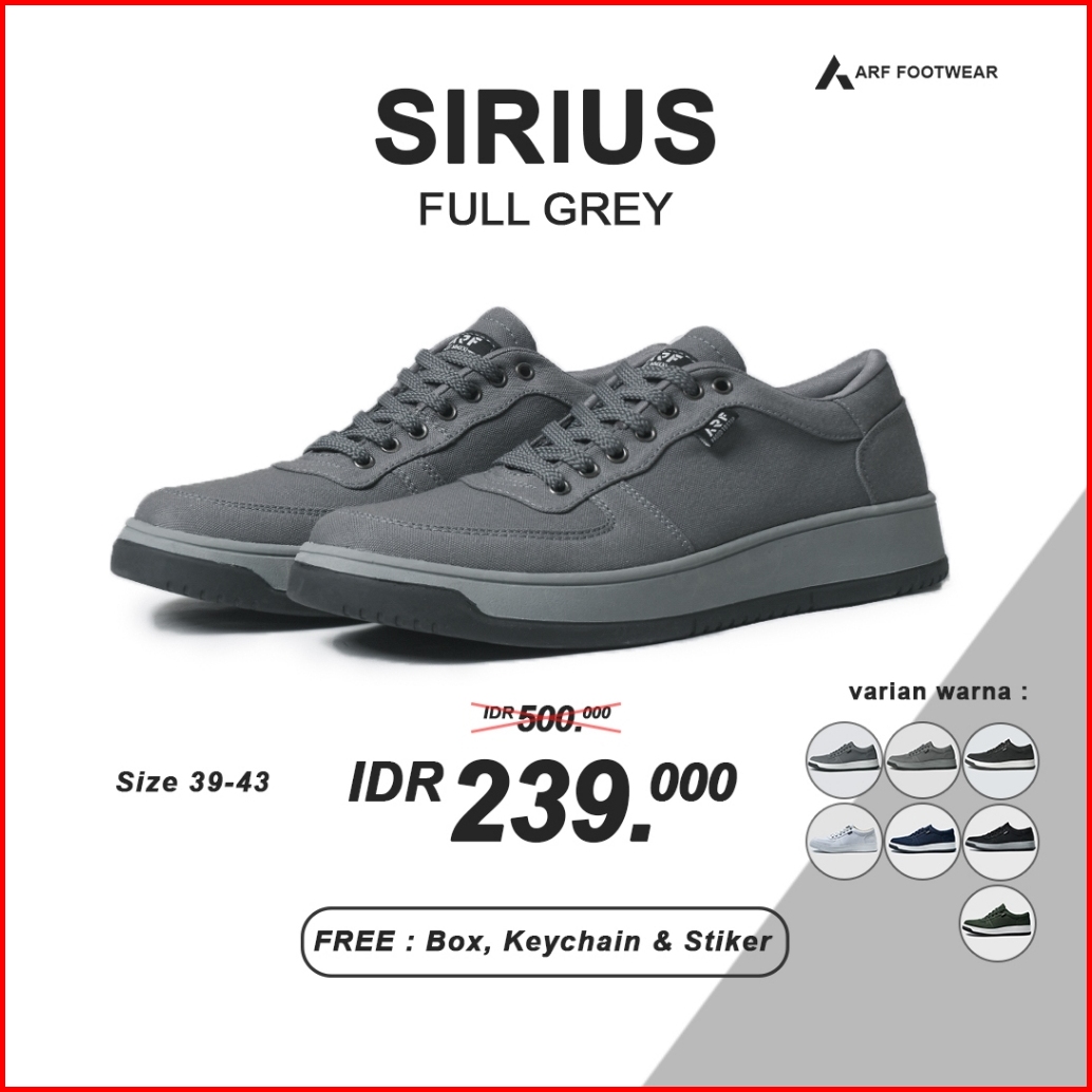 Arf Sirius Fullgrey Sepatu Sneakers Casual Pria Wanita Distro Kasual Abu Abu Canvas Shoes