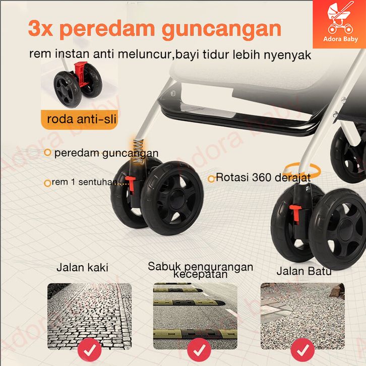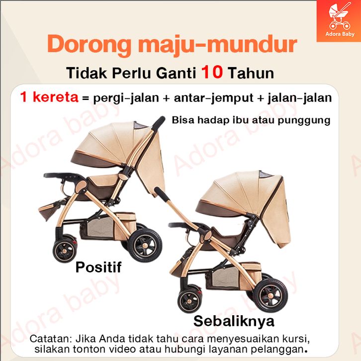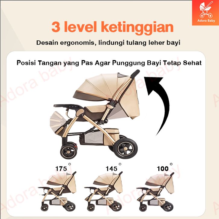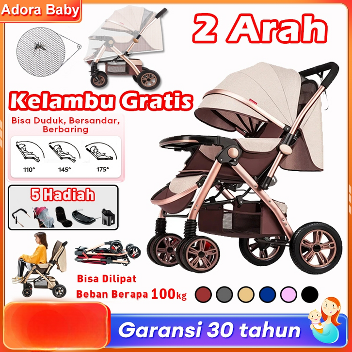 Kereta Dorong Bayi BEIGE Stroller Kereta Dorong Lipat Travelling Stroller Baby 2 Arah Beban 100kg