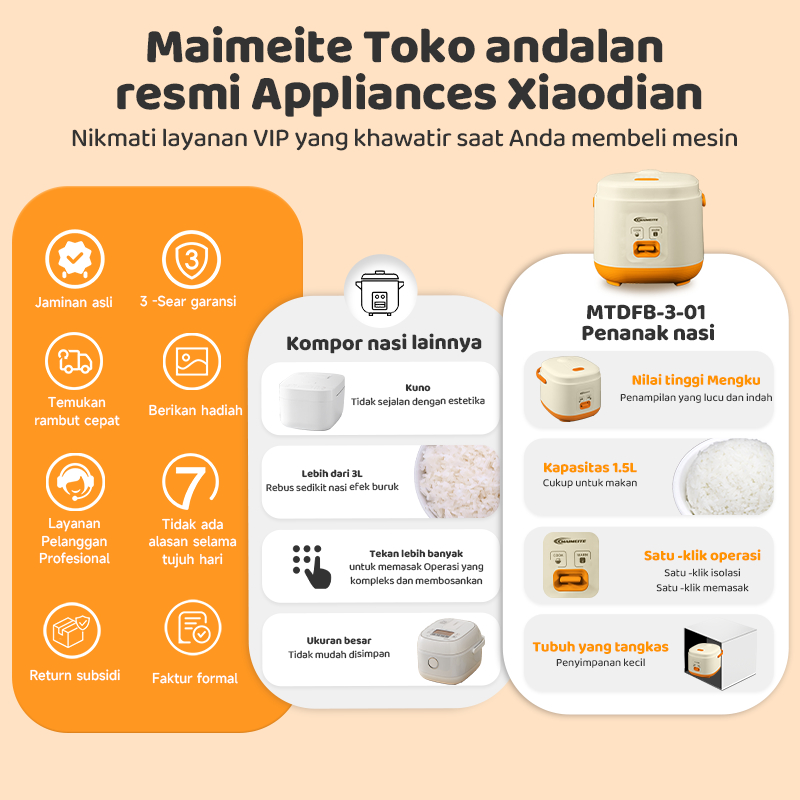 MAIMEITE Rice Cooker magic com mini /Portable Multifungsi 1.6L Magiccom Kecil Low Watt Steamer Penanak nasi MTDFB-3-02