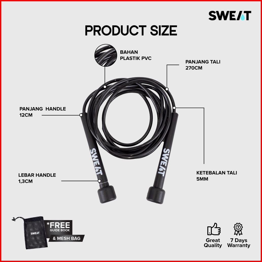 Sweat - Plastic Jump Rope Tali Skipping Adjustable - Alat Workout Premium Untuk Olahraga Lompat
