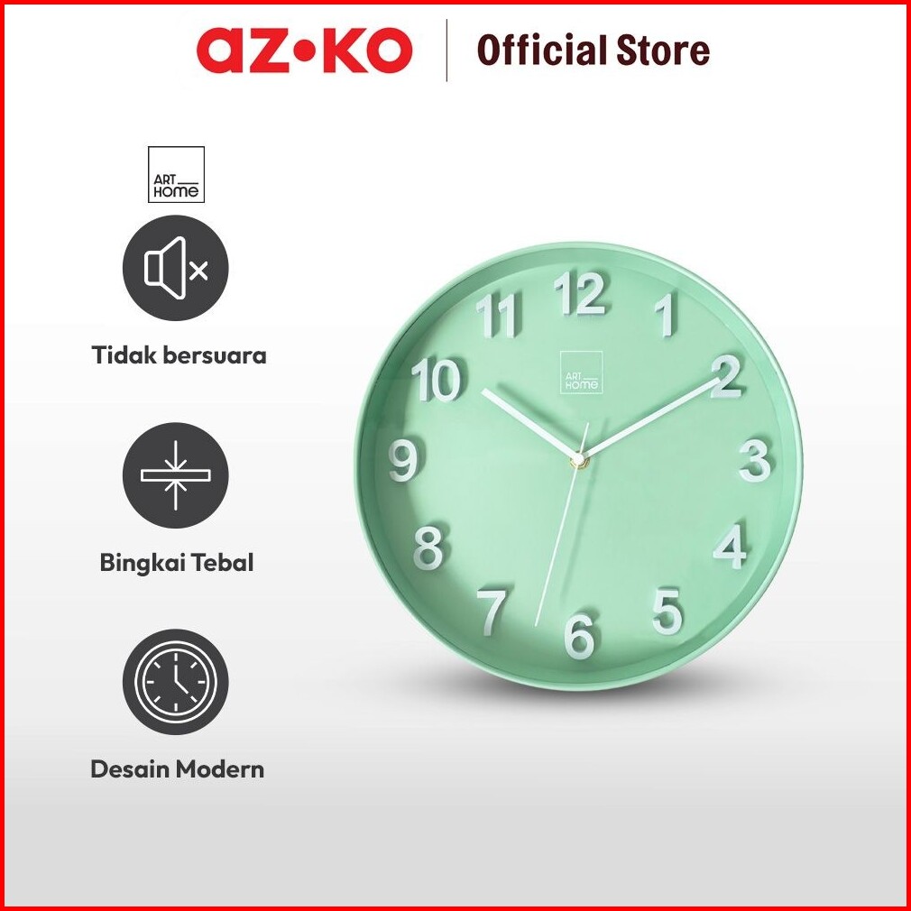 Azko Arthome 30 Cm Jam Dinding Bold - Hijau Sage Wall Clock Jam Tembok Analog Aesthetic Dekorasi Rumah Hiasan Dinding