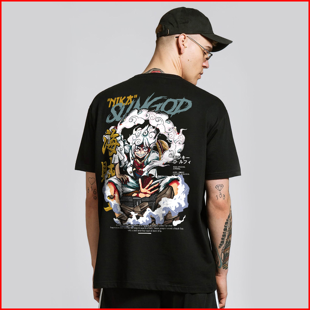 Rhid - T Shirt Kaos Monkey D Luffy Gear 5 Sun God Nika