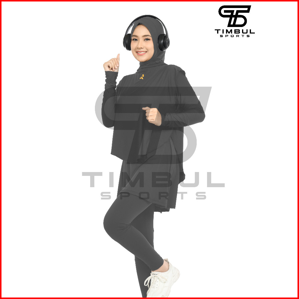 Stelan Baju Olahraga Wanita Muslimah Senam Renang Lari Bersepeda Legging Rok Hijab Rompi