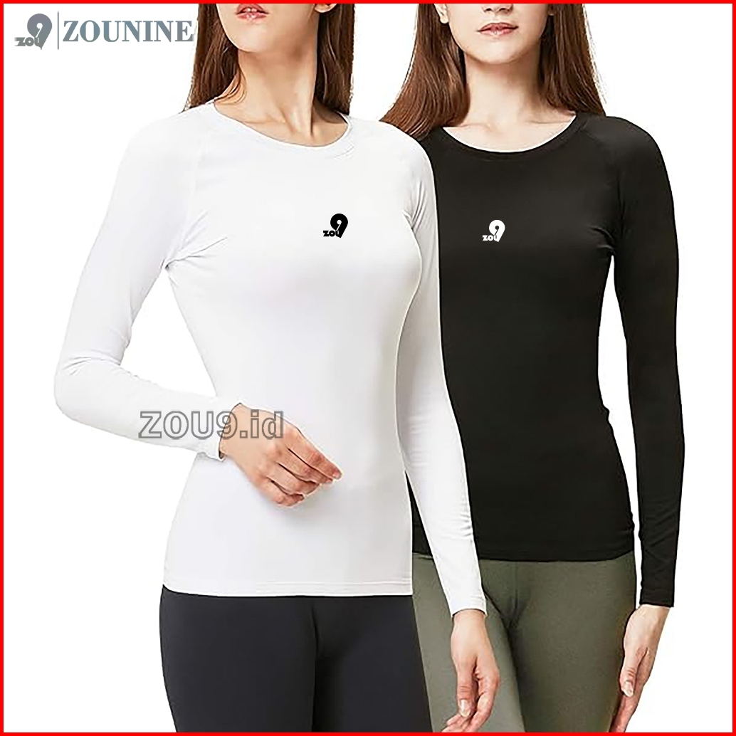 Zou9 Baselayer Manset Baju Olahraga Wanita Kaos Senam Lari Sport Running