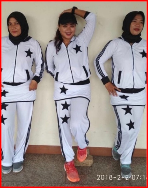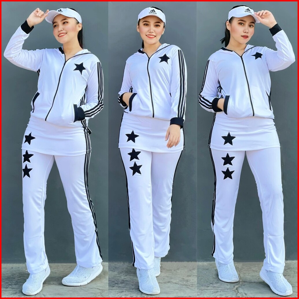 Baju Senam Setelan Lapangan Panjang Muslimah Hijab Cycling Gowes Set Rok Putih Hitam