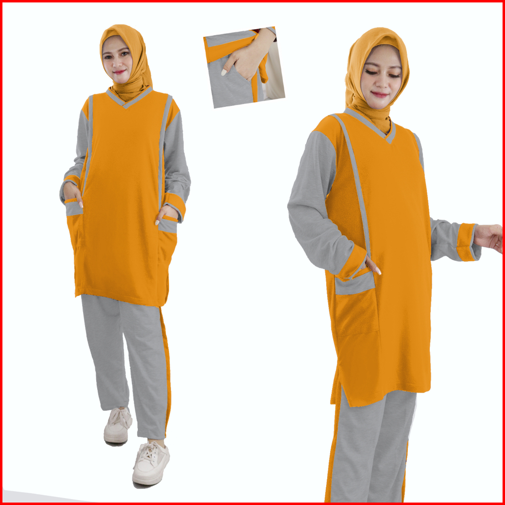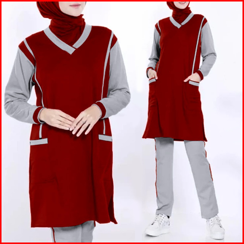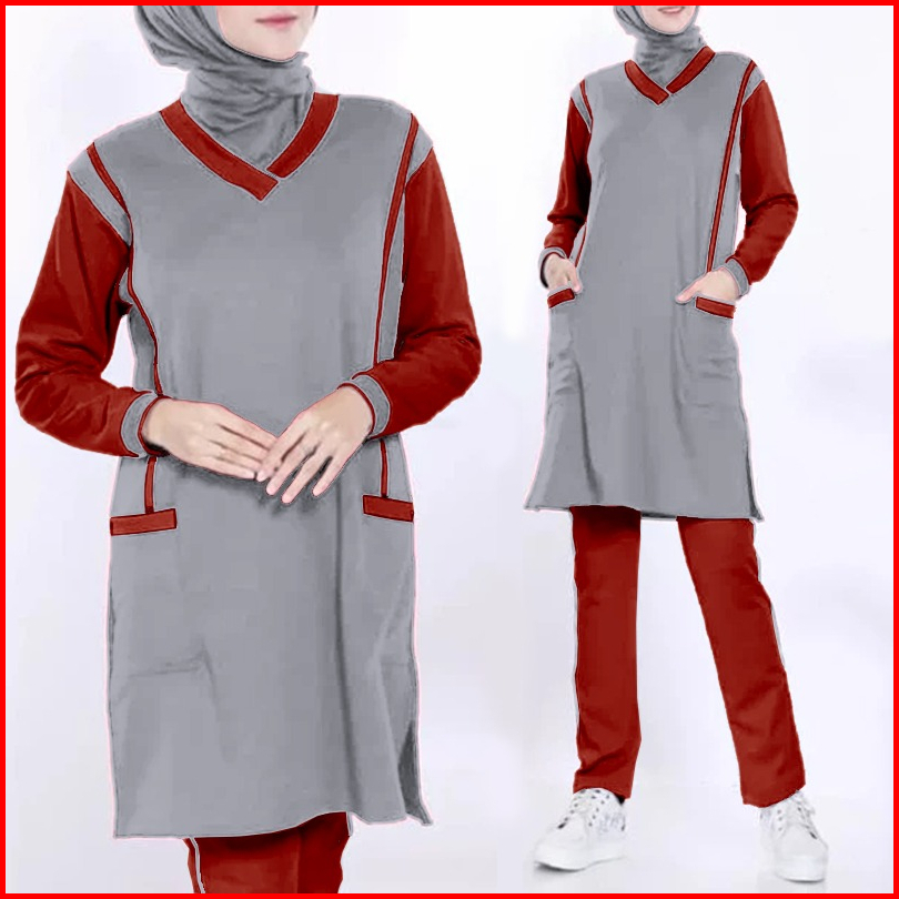 Baju Setelan Tunik Wanita Muslimah Olahraga Senam Zumba Training Jumbo Xl Xxl 3xl