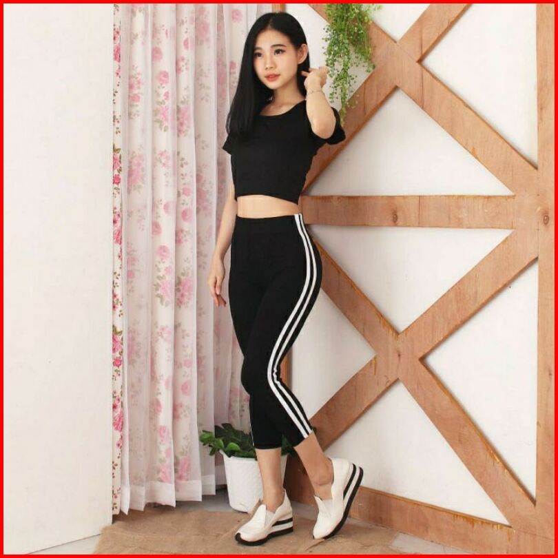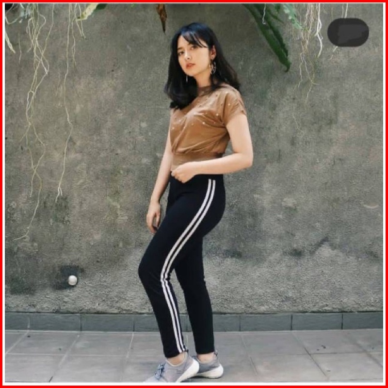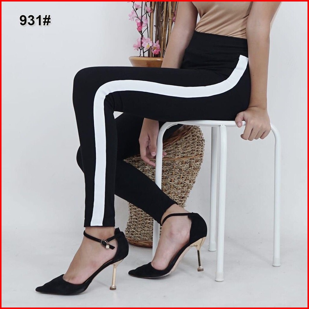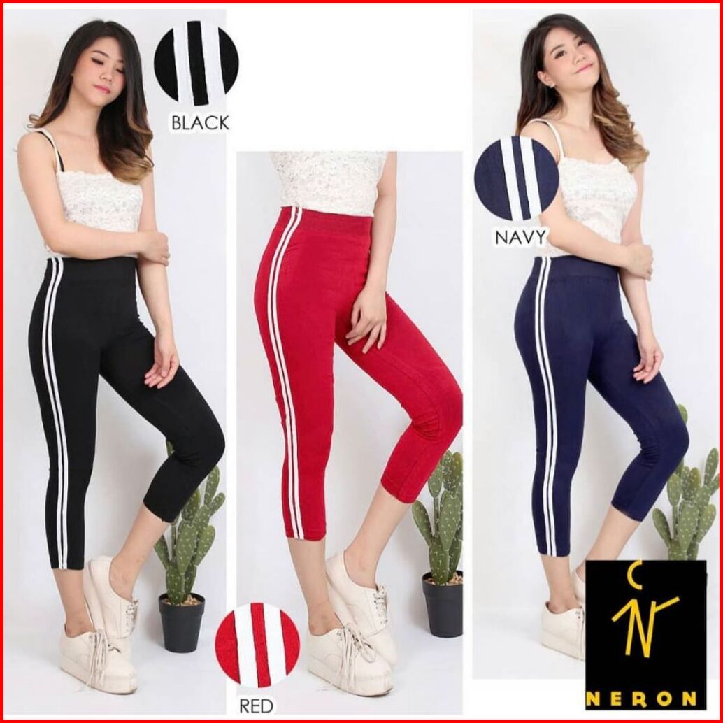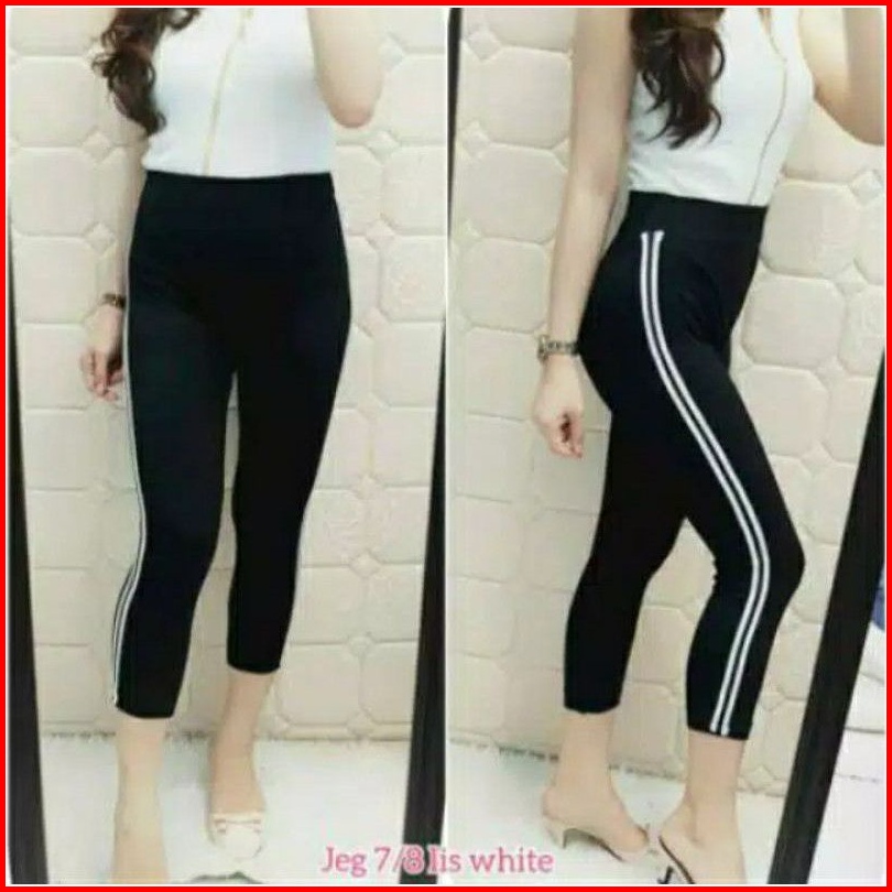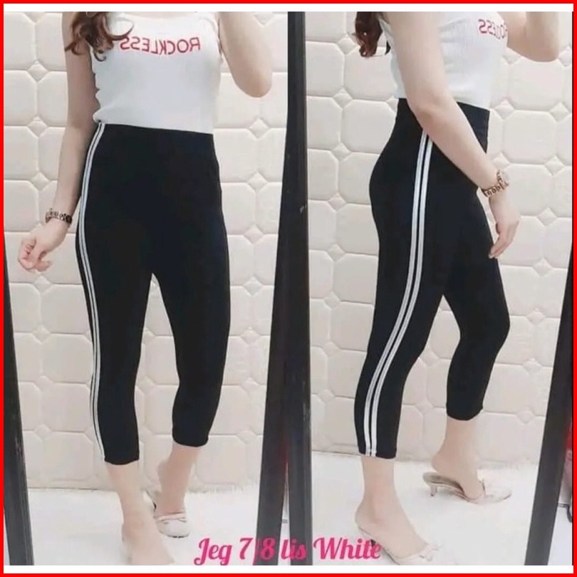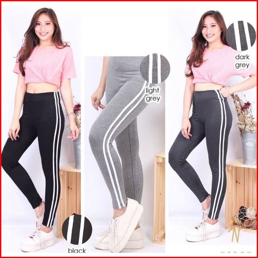 Legging Wanita Highwaist List Samping Putih Leging Strip Samping