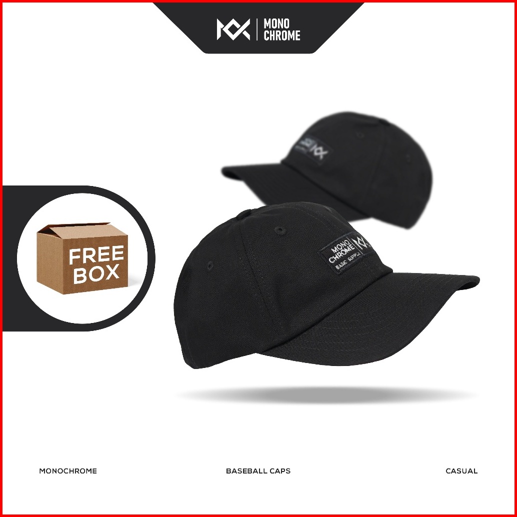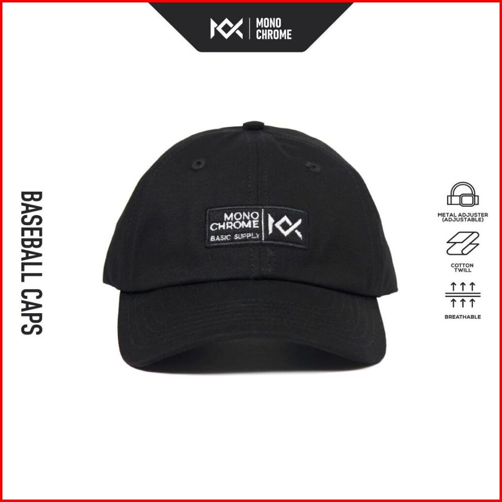 Monochrome Topi Pria Baseball Cotton Twill Hat Outdoor Caps Black Side