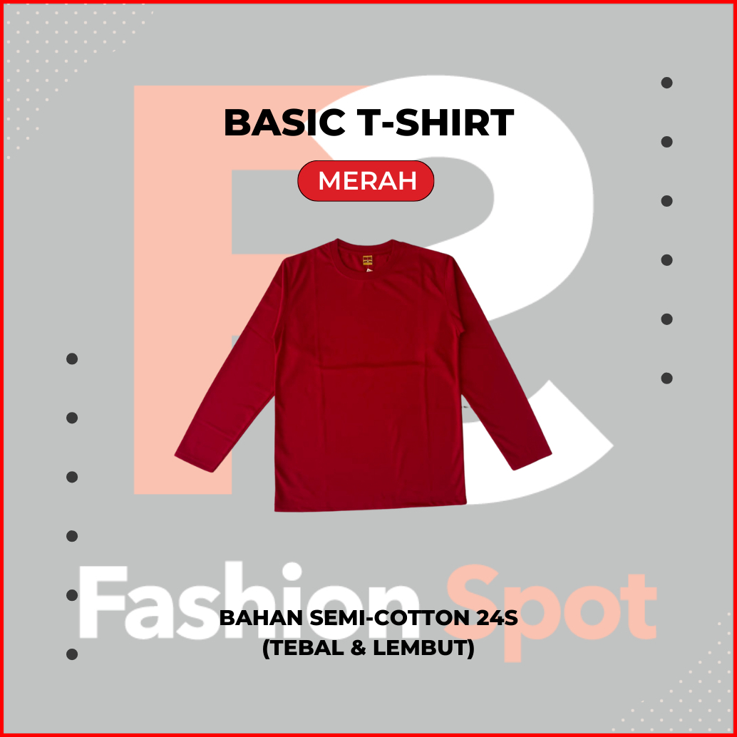 Tebal Kaos Polos Anak Tanggung Lengan Panjang Unisex Umur 5-15 Tahun Bahan Semi-cotton 24s