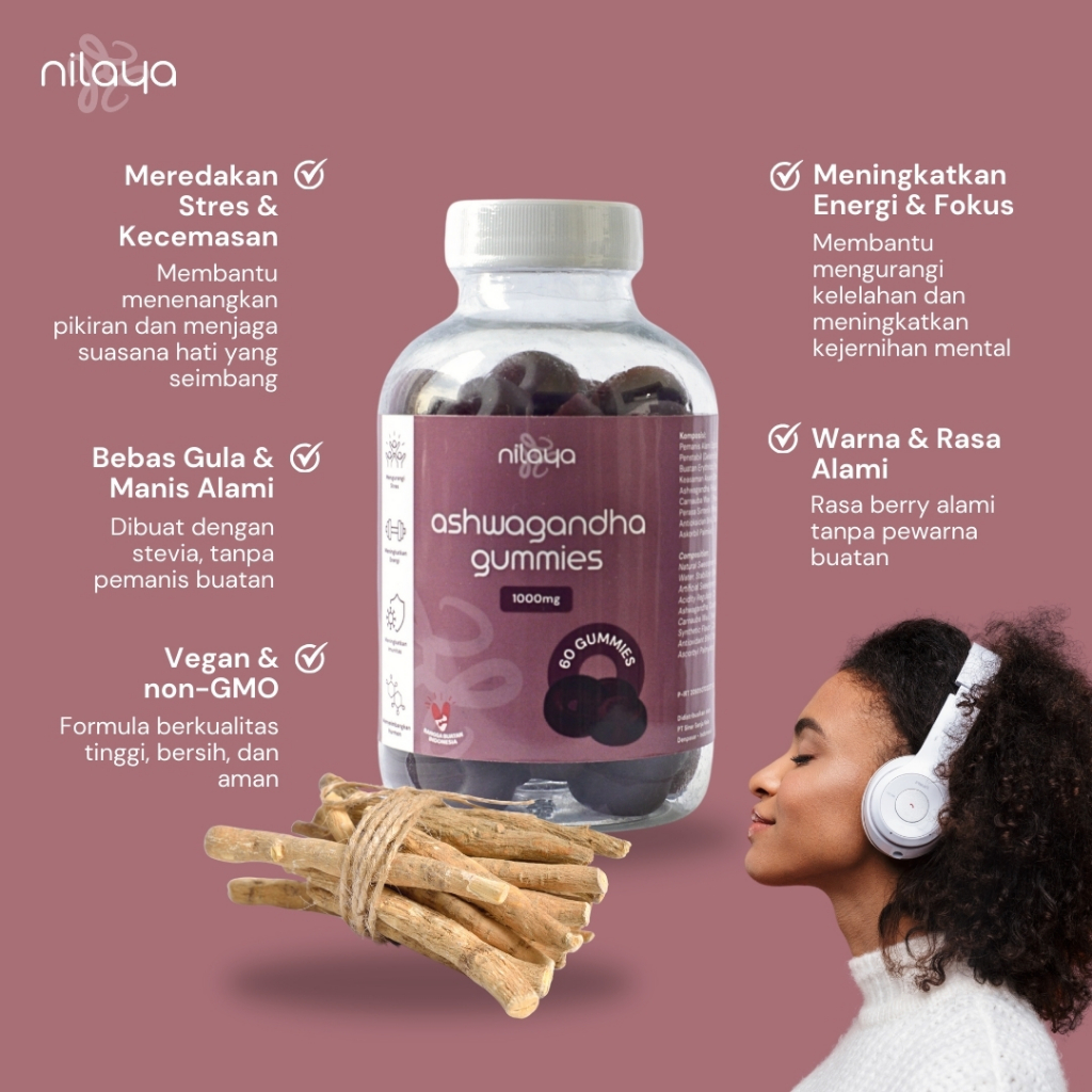 Ashwagandha Gummies Nilaya - Stop Stress Membantu Relaksasi & Fokus - Anak & Dewasa - No Sugar - Zero Kalori