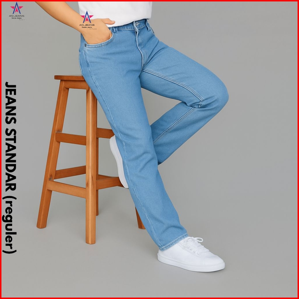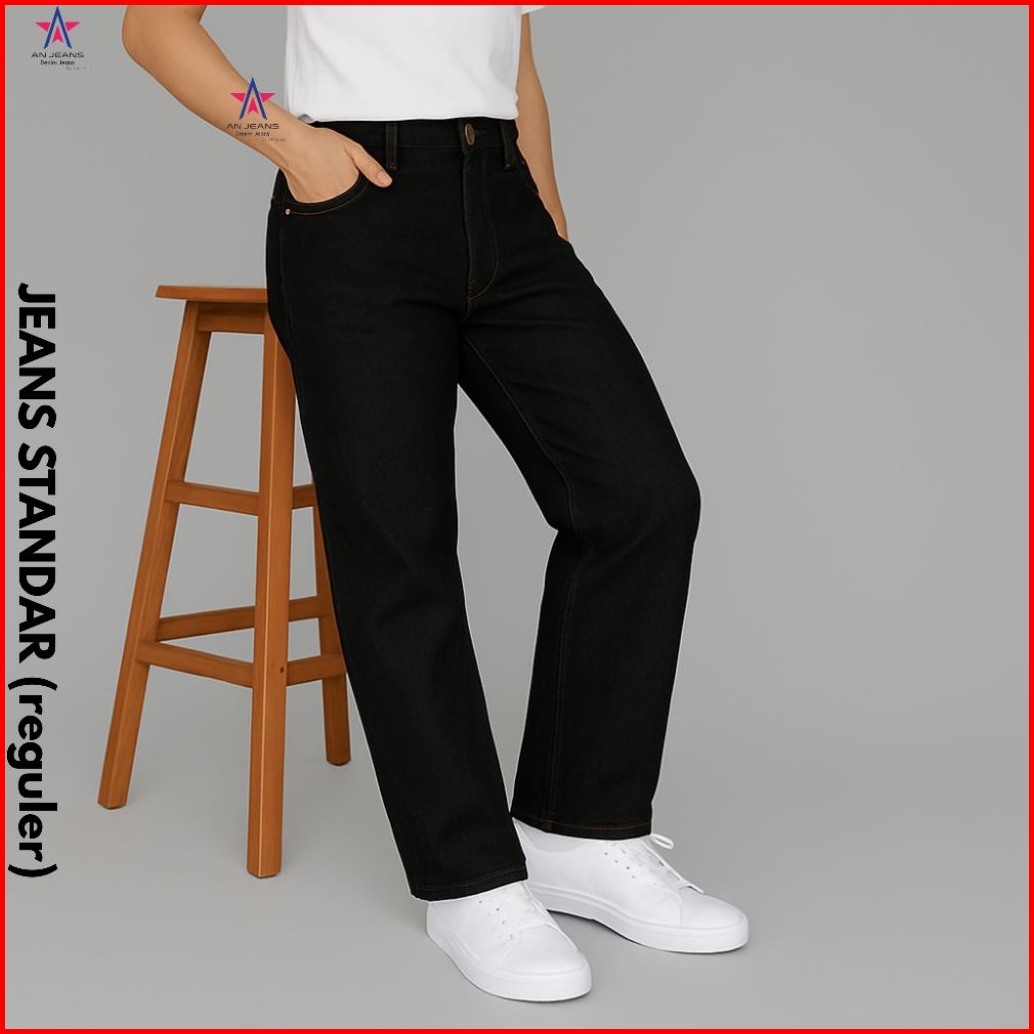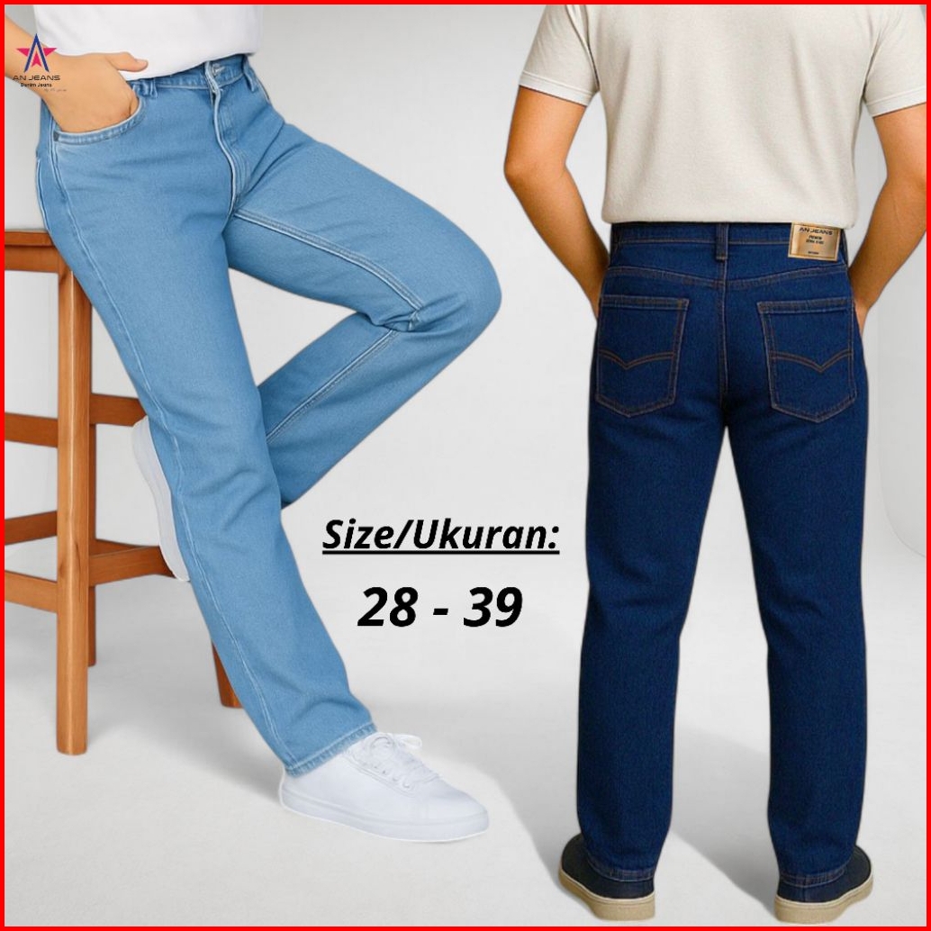 An Jeans - Celana Jeans Reguler Pants Retro Basic Denim Celana Standar