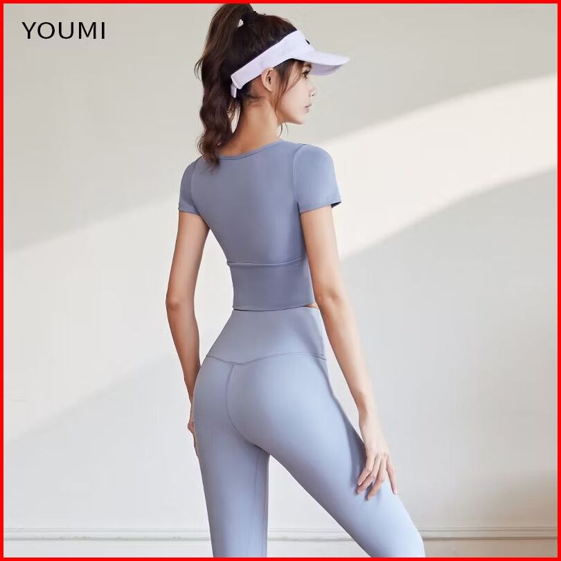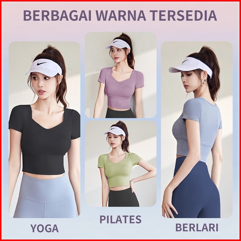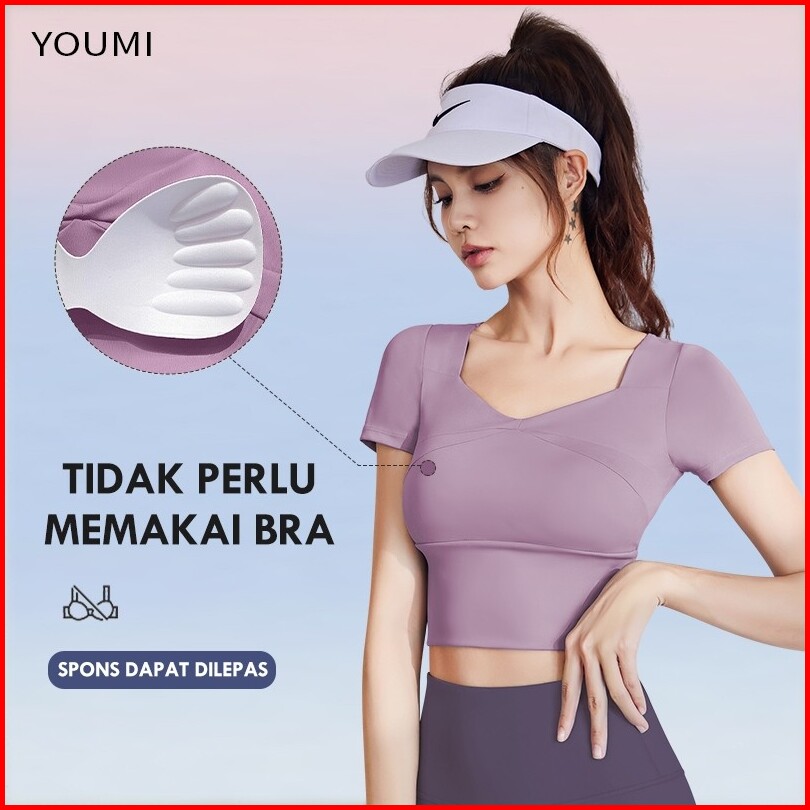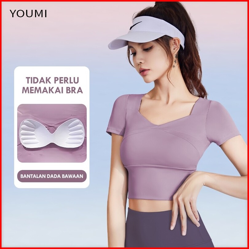 Youmi Kaos Olaraga Wanita Yoga Gym Pilates Outfit Atasan Lengan Pendek Fit Body Baju Senam Wanita Aerobic Terbaru Slimfi