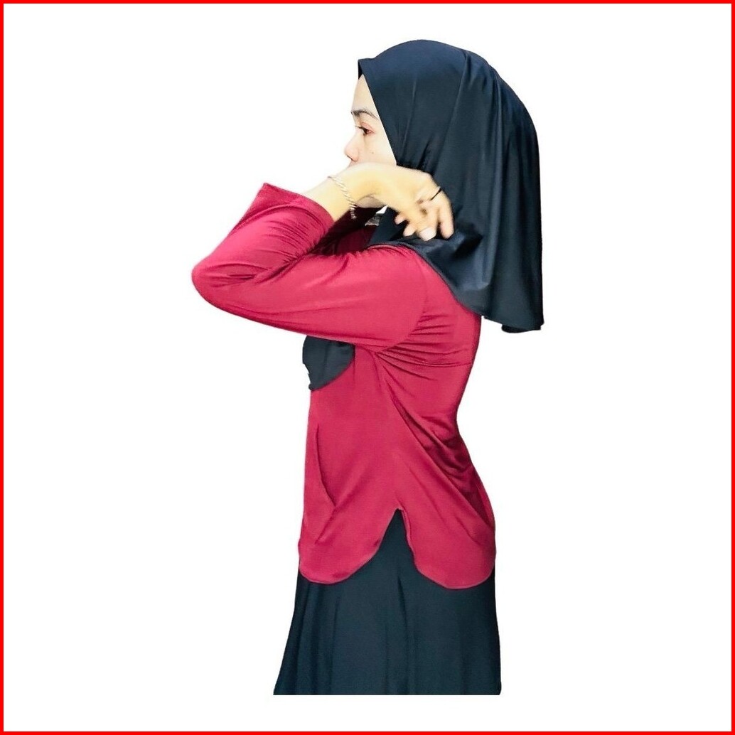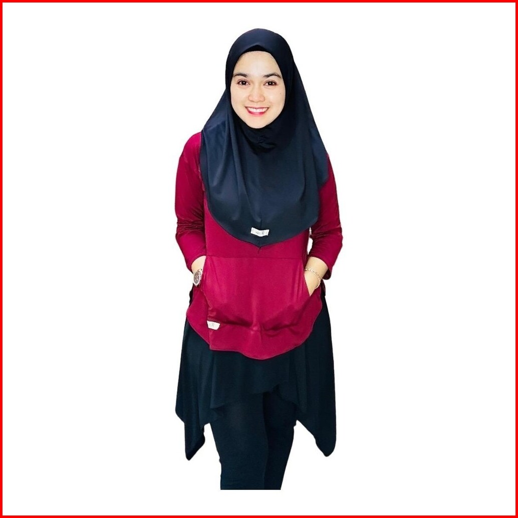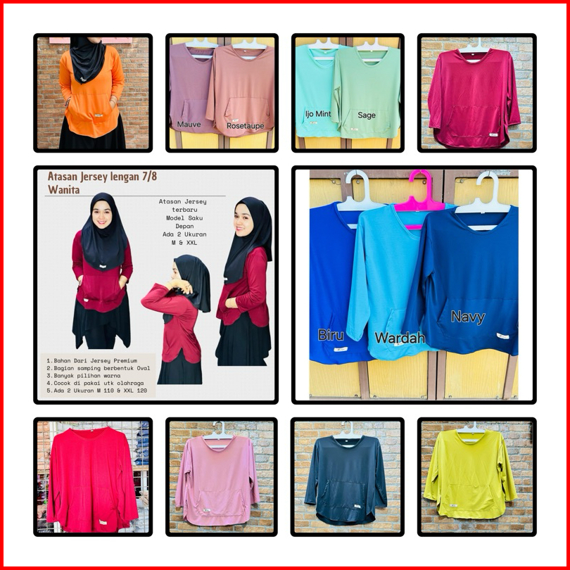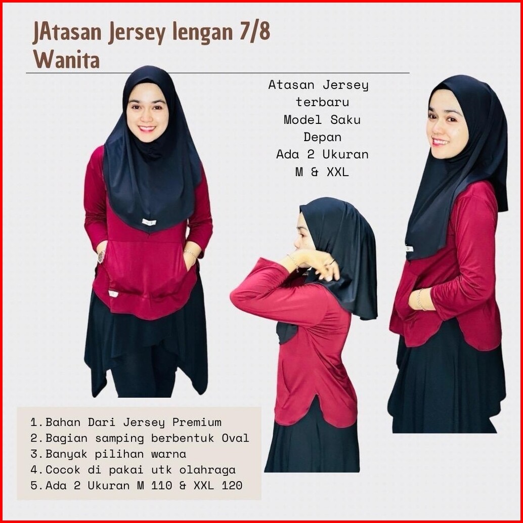 Atasan Jersey Wanita Lengan Tangan 7 8 Saku Depan