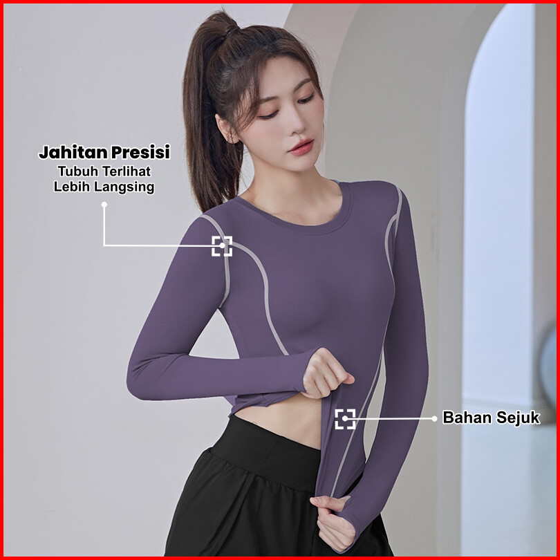 Youmi Baju Olahraga Wanita Lengan Panjang Model Thumb Hole Ym077