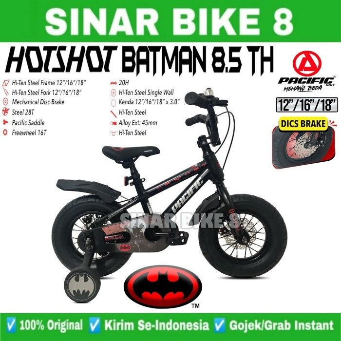 Sepeda BMX PACIFIC HOTSHOT BATMAN 8.5 TH Disc Brake Ban 3.0 NEW Ukuran 12 16 18 Inch Ban Jumbo 3.0