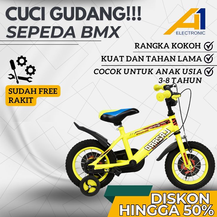 Sepeda Mini BMX Anak Laki - Laki Ban Kecil Ukuran 12 inch Anak usia 3 - 8 Tahun Sudah Rakit