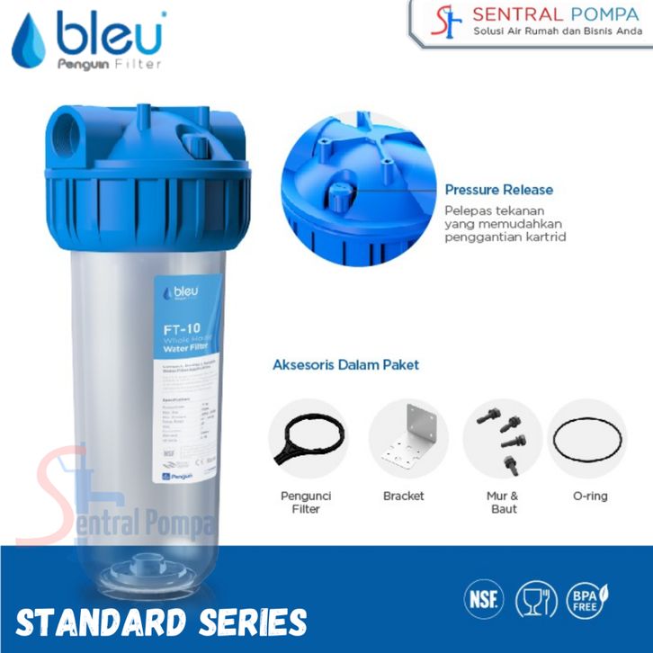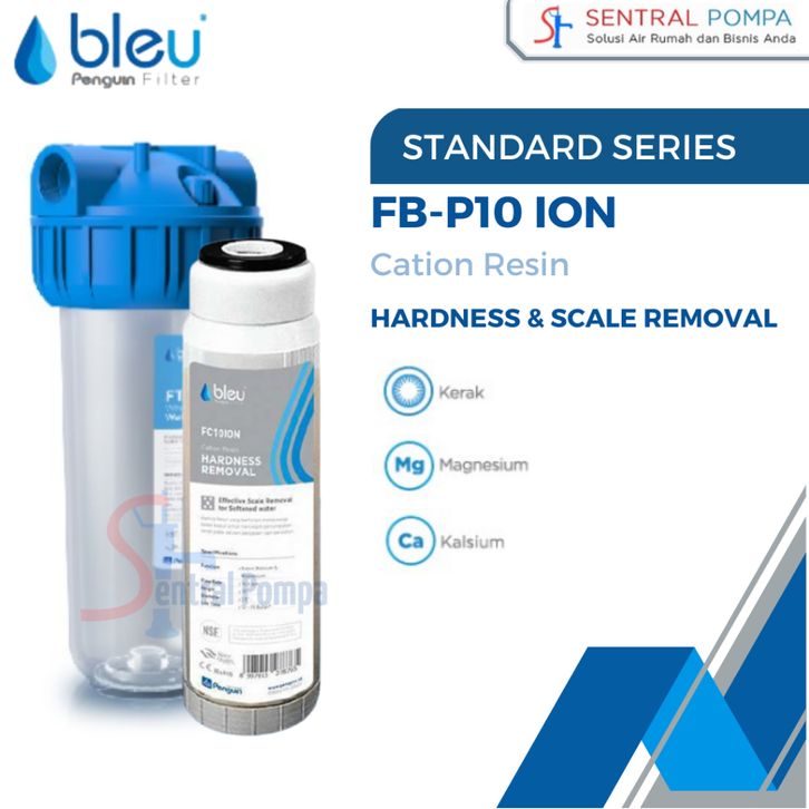 Water Filter Penguin Bleu 10" + Cation Resin Cartridge Saringan Air FB-10 ION Pro PBF 10 inch Standard | Sentral Pompa