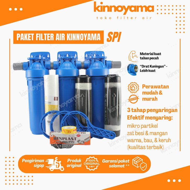 Paket Filter Penjernih Air Toren Kuning 3 tahap / Saringan Filter Air Sumur Tanah Zat Besi 10 Inci