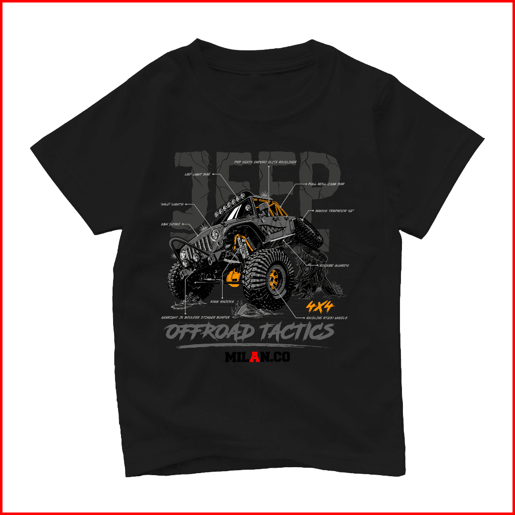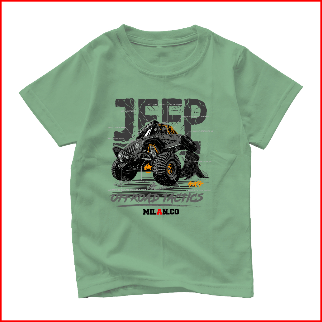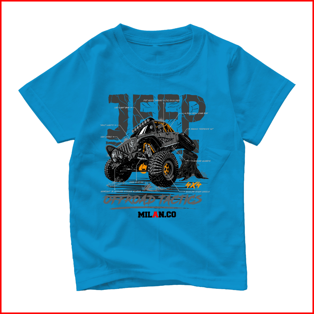Milan.co Kaos Anak Distro Laki-laki Lengan Pendek 1-14 Tahun Baju Anak Motif Mobil Jeep Terlaris