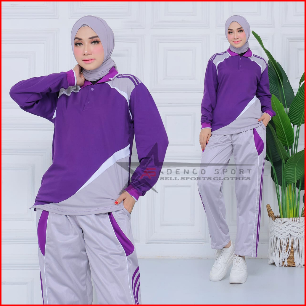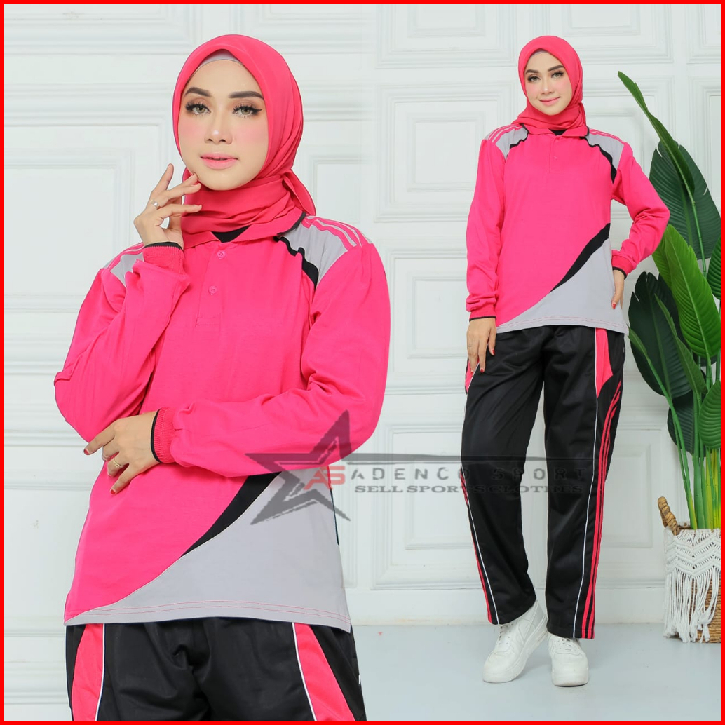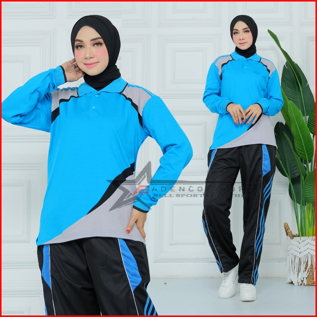 Setelan Baju Olahraga Wanita Lengan Panjang Seragam Olahraga Lapangan Kelompok Senam