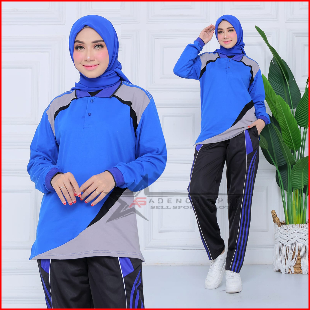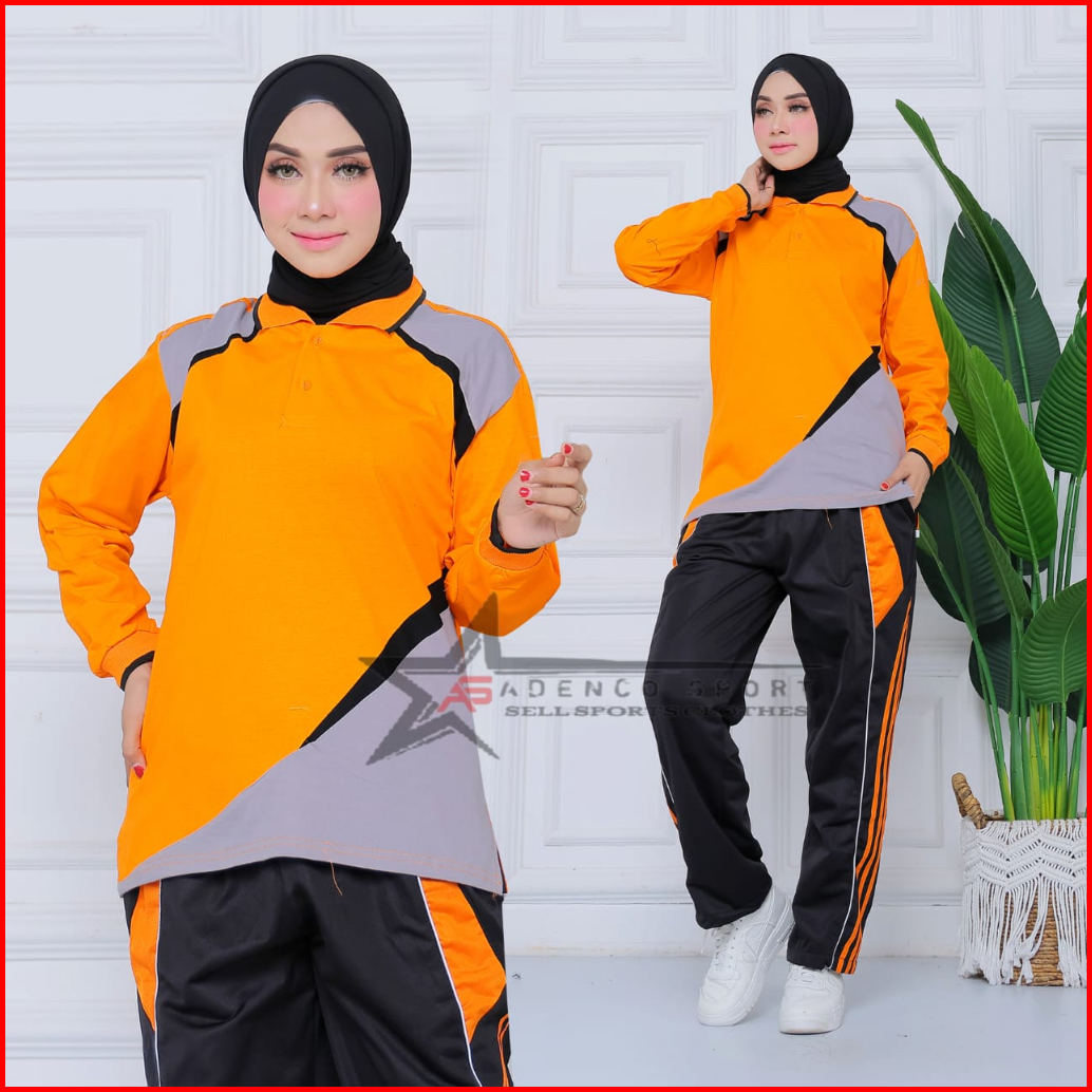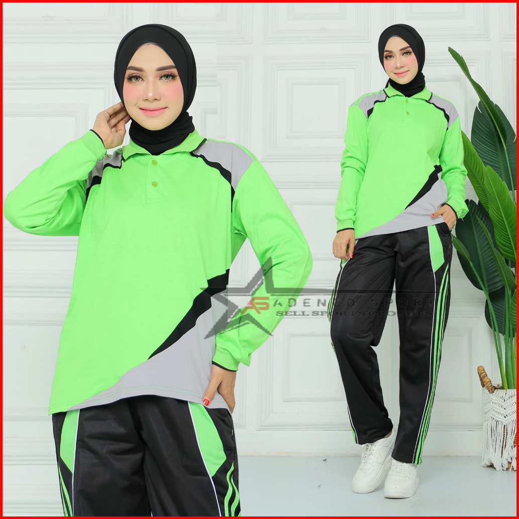 Setelan Baju Olahraga Wanita Lengan Panjang Seragam Olahraga Lapangan Kelompok Senam