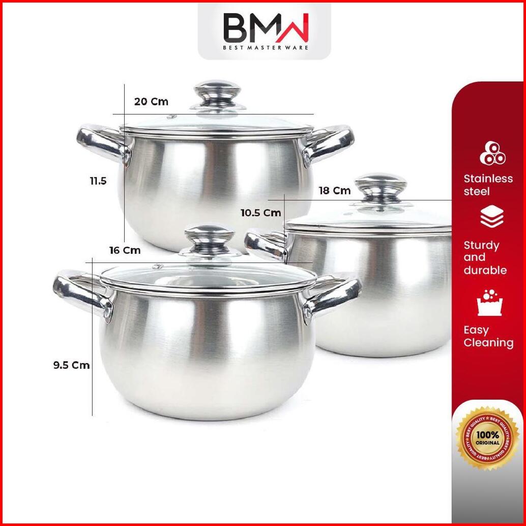 Bmw Kitchen Ware - Panci Labu Panci Sop Panci Rebus Panci Tutup Kaca Panci Stainless Steel Premium Ukuran 16 18 20 Cm