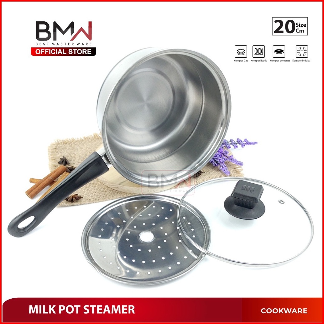 Bmw Kitchen Ware - Panci Susu Stainless Steel Panci Kukus Milk Pot Mpasi Steamer 20 Cm Panci Soup Pot Tebal