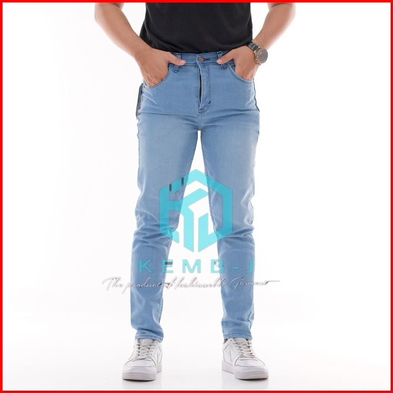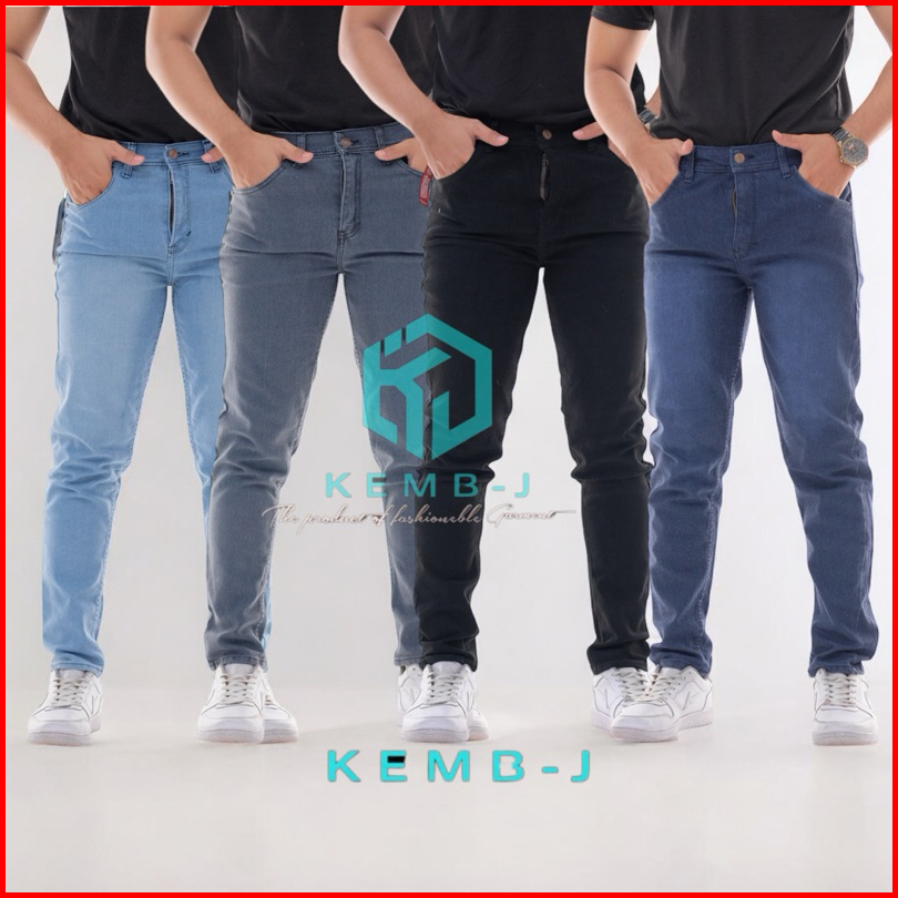 Celana Panjang Jeans Slimfit Pria Celana Pensil Skinny Celana Bahan Jeans Stretch Ngaret Tebal