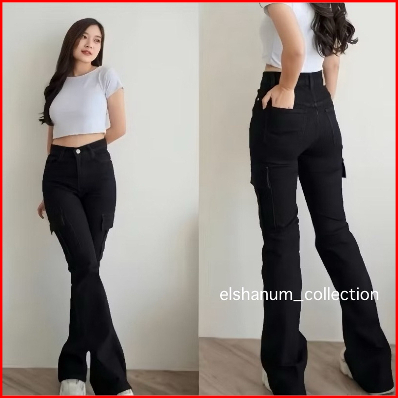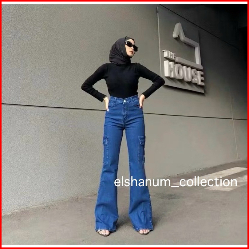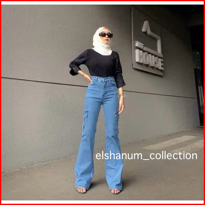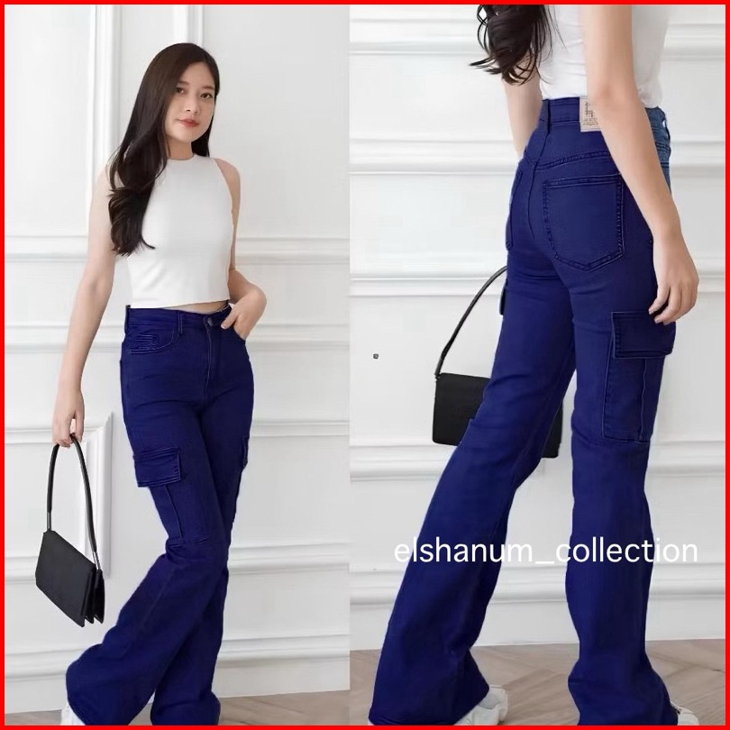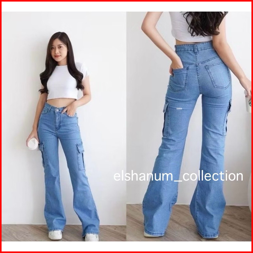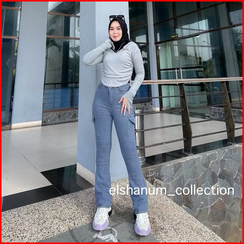 Celana Cutbray Jeans Cargo Wanita - Cutbray Jeans Wanita Kekinian - Celana Jeans Wanita Cewek Denim Viral - Higwaist Wan