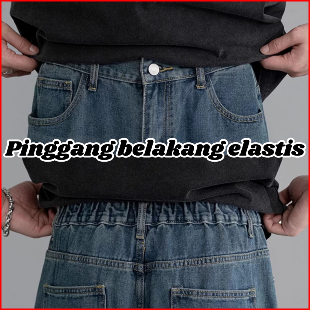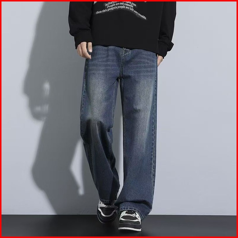 Keyboy Celana Jeans Pria Panjang Baggy Biru Kulot Celana Dewasa Cowok Straight Denim Pants Korean Style