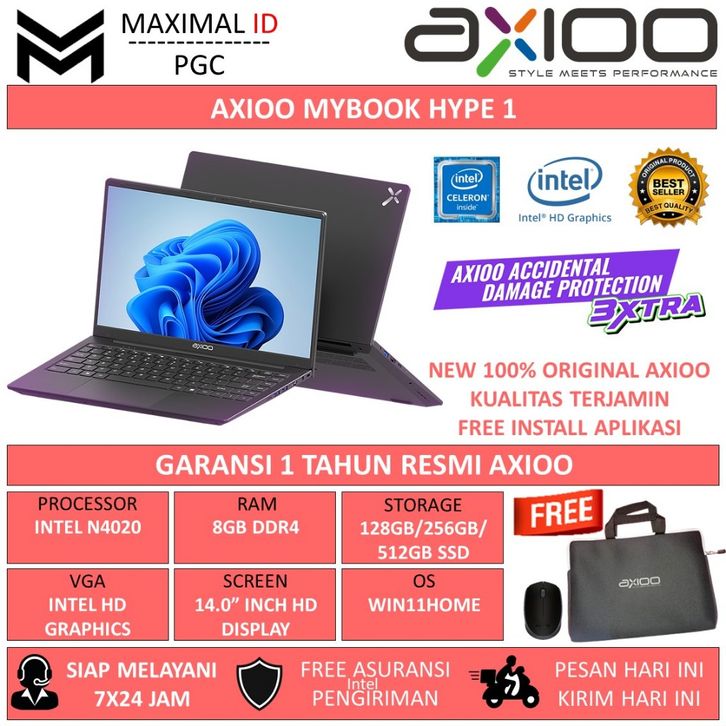 Laptop Axioo Mybook Hype 1 Intel N4020 RAM 8GB 512GB SSD Windows11Home Resmi