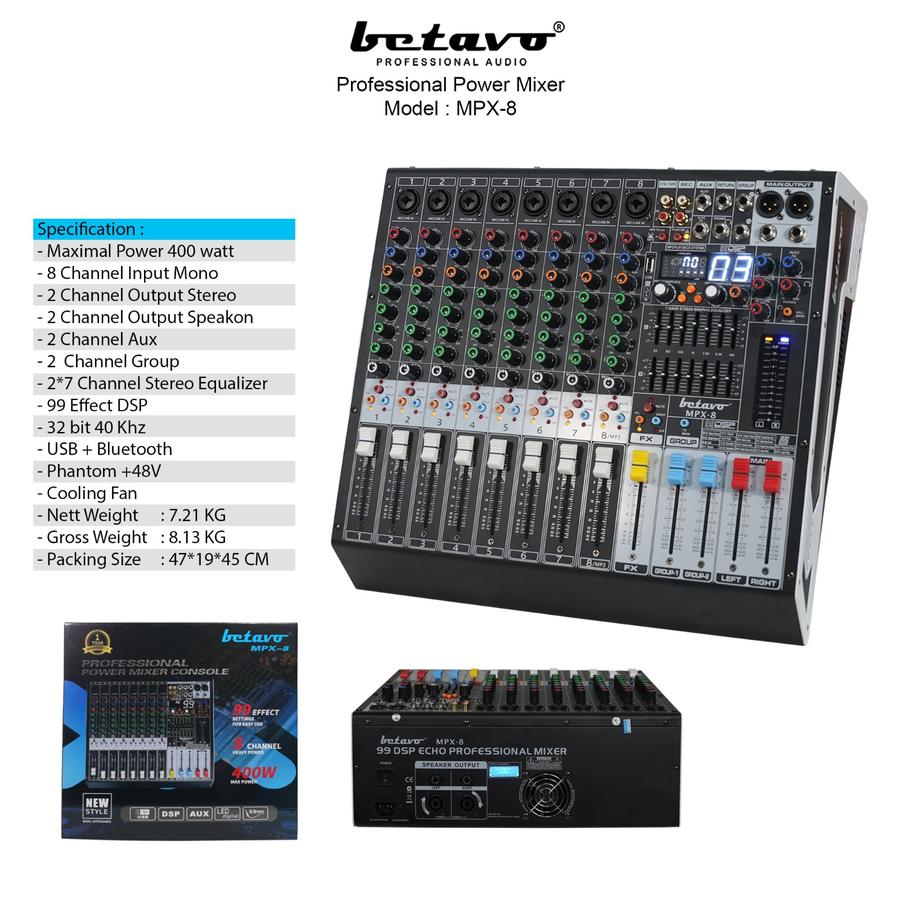 Power Mixer BETAVO MPX8 MPX 8 Channel Original USB Bluetooth Professional