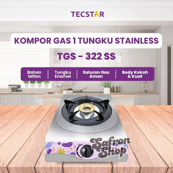 PAKET HEMAT KOMPOR + REGULATOR TECSTAR KOMPOR STAINLESS STEEL ANTI KARAT MUDAH DI BERSIHKAN TGS 322