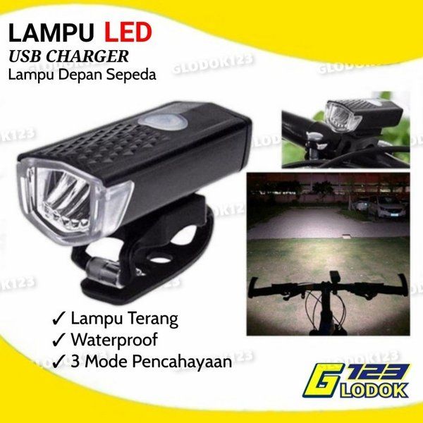 Lampu Depan Belakang Sepeda LED USB Charge Rechargeable Anti Air