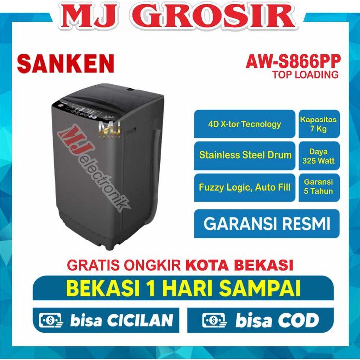 MESIN CUCI 1 TABUNG SANKEN AWS 866 TOP LOADING 7 KG AWS866