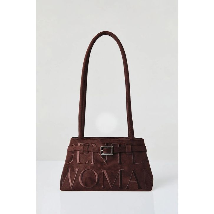 Gentle Woman Embroidered Suede Ballerina Shoulder Bag Dark Brown (28 x 16.5 x 7.5)