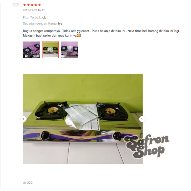 PAKET HEMAT KOMPOR STAINLESS STEEL + REGULATOR RINNAI RI 522E / RI-522E / RI 522 E / RI522 E (2 TUNGKU)