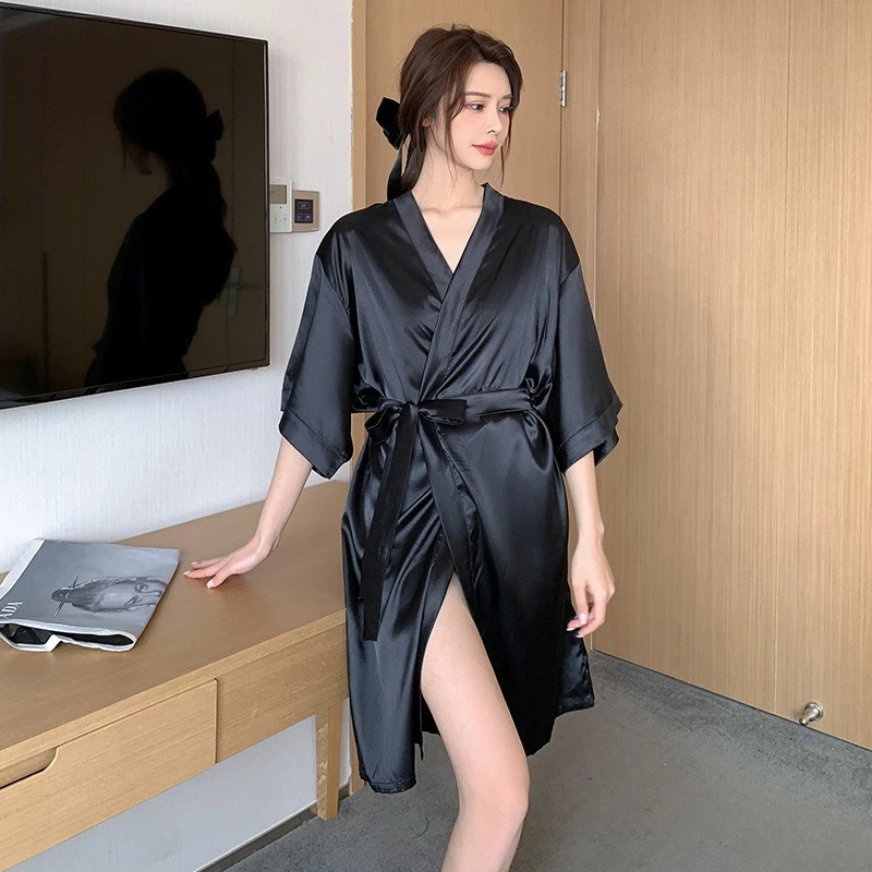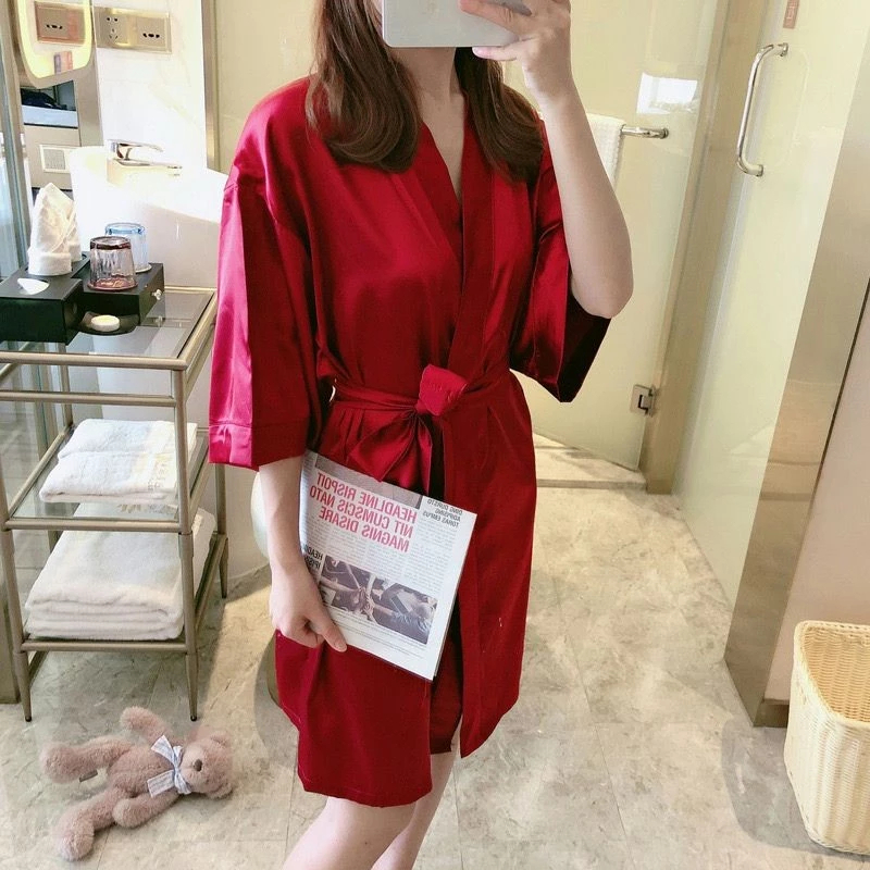 Lingerie Kimono Wedding Pengantin Sexy Bahan Satin Model Kimono Polos Kimono Mandi Wanita Sleepwear Ukuran Free Size1356