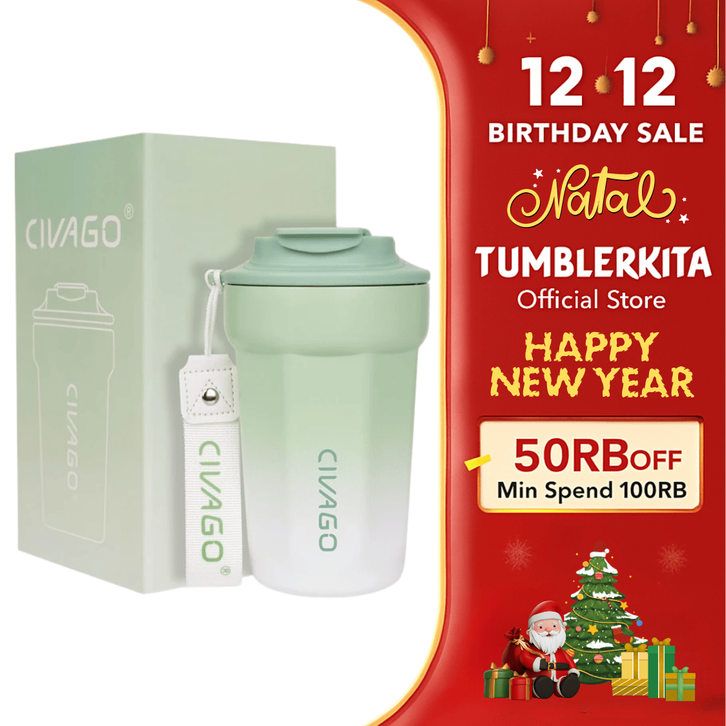 TUMBLER TAHAN PANAS DAN DINGIN BOTOL MINUM & TERMOS AIR PANAS LAPISAN KRAMIK 13OZ 385ML CIVAGO