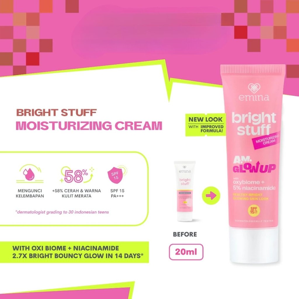 Emina Bright Stuff Moisturizing Cream 20ml - Pelembab Wajah Mencerahkan | Merah Jingga Official