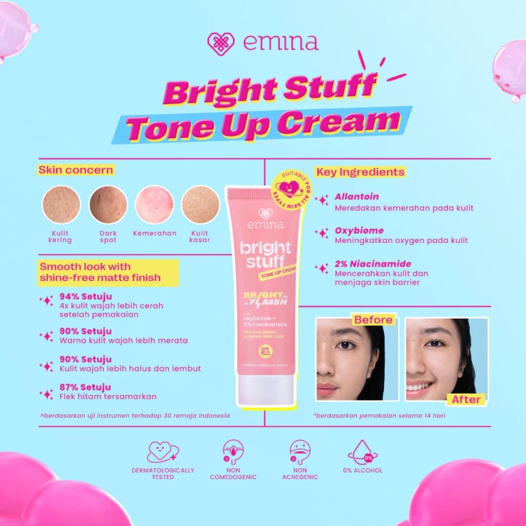 EMINA Bright Stuff Tone Up Cream 20ml - Pelembab Wajah | Merah Jingga Official