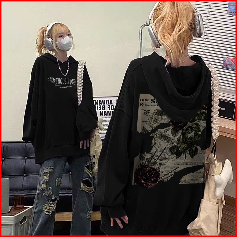 Forteid Oversize Hoodie Wanita Korean Style Oversize Hoodie Sweater Mawar Baju Wanita Kekinian Baju Wanita Switer Wanita