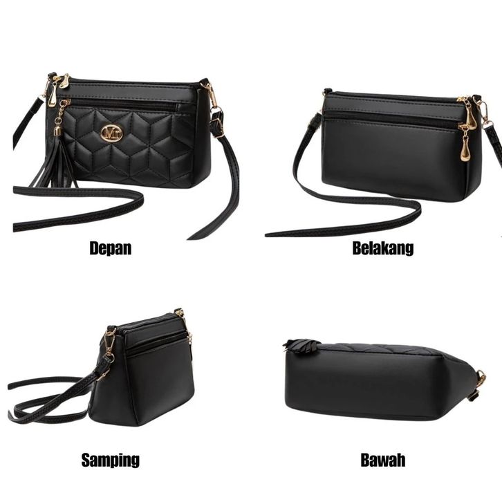 TAS Selempang Wanita Sling Bag Korea Kulit Hitam Ambergia Premium Shoulder Bahu Remaja Cewek Murah Kekinian Lucu Fashion