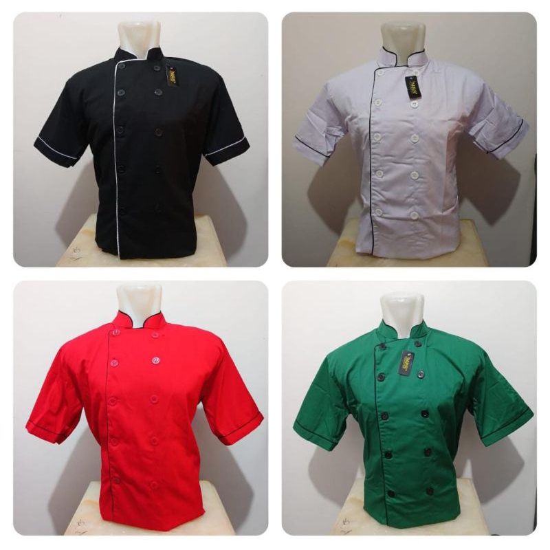 Baju Koki, Baju Chef, Baju Dapur, Seragam Waiter, Baju Dapur, Baju Masak Model Lis Tangan Pendek