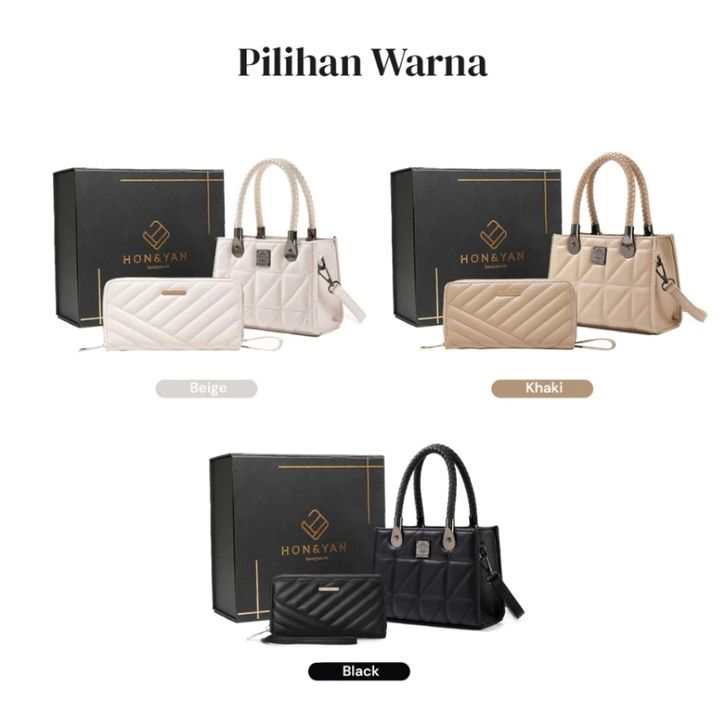 HONYAN PLUS Tas Wanita Caroline Gift Set Tas Selempang Wanita Slingbag Wanita Gift Set 2In1 Premium