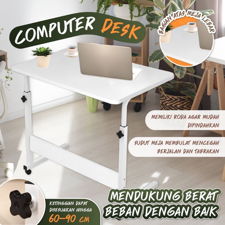 Meja Laptop Portable Standing Desk Meja Belajar Komputer Beroda Bertingkat Multifungsi