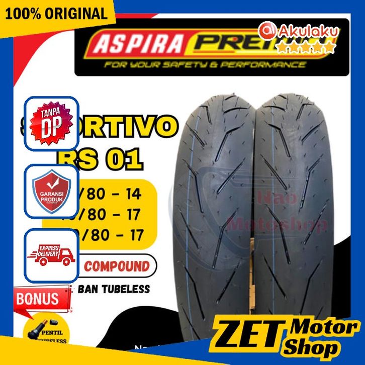 [FREE WRAPPING+PENTIL] BAN ASPIRA PREMIO SPORTIVO RS 01 SOFT COMPOUND TUBELESS RING 14 90/80 100/80 RING 17ZET MOTOR SH