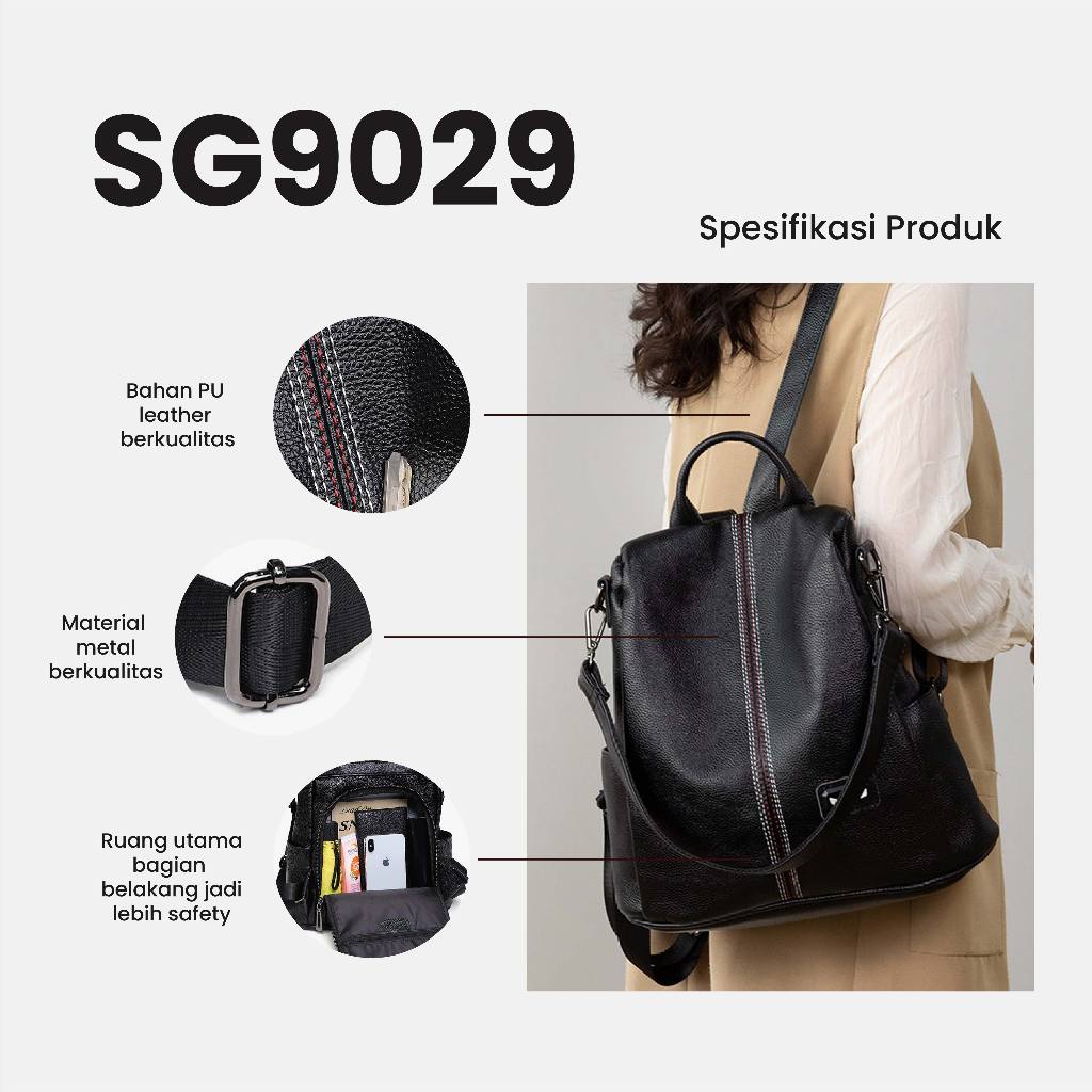 [PROMO SPESIAL] ASTA Tas Gendong Hitam Import Premium Kulit Sintetis Korean Style Wanita untuk Sekolah Kerja & Hangout