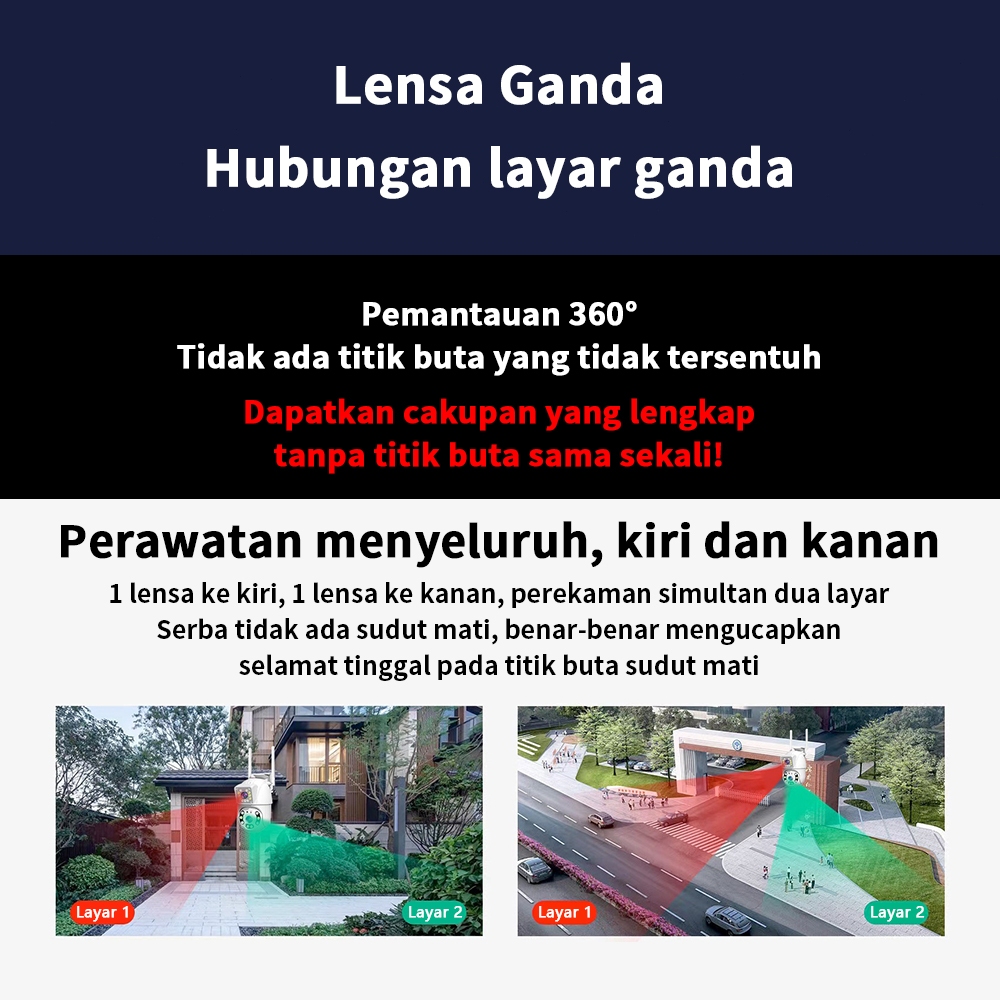 1 TAHUNCCTV WIFI JARAK JAUH LEWAT HP DUAL LWNS 360°PTZ CAMERA AUTO TRACKING NIGHT VISION 8MP WIRELESS CCTV IP SECURITY