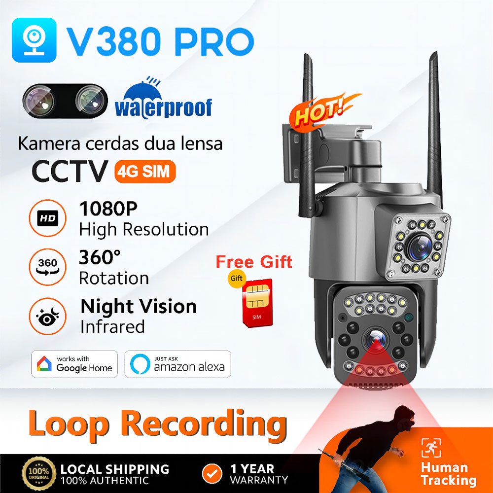 V380PRO KARTU SIM CCTV DUAL LENS WITH DUAL SCREEN 4K WIFI KAMERA 8MP PTZ IP66 TAHAN AIR OUTDOOR